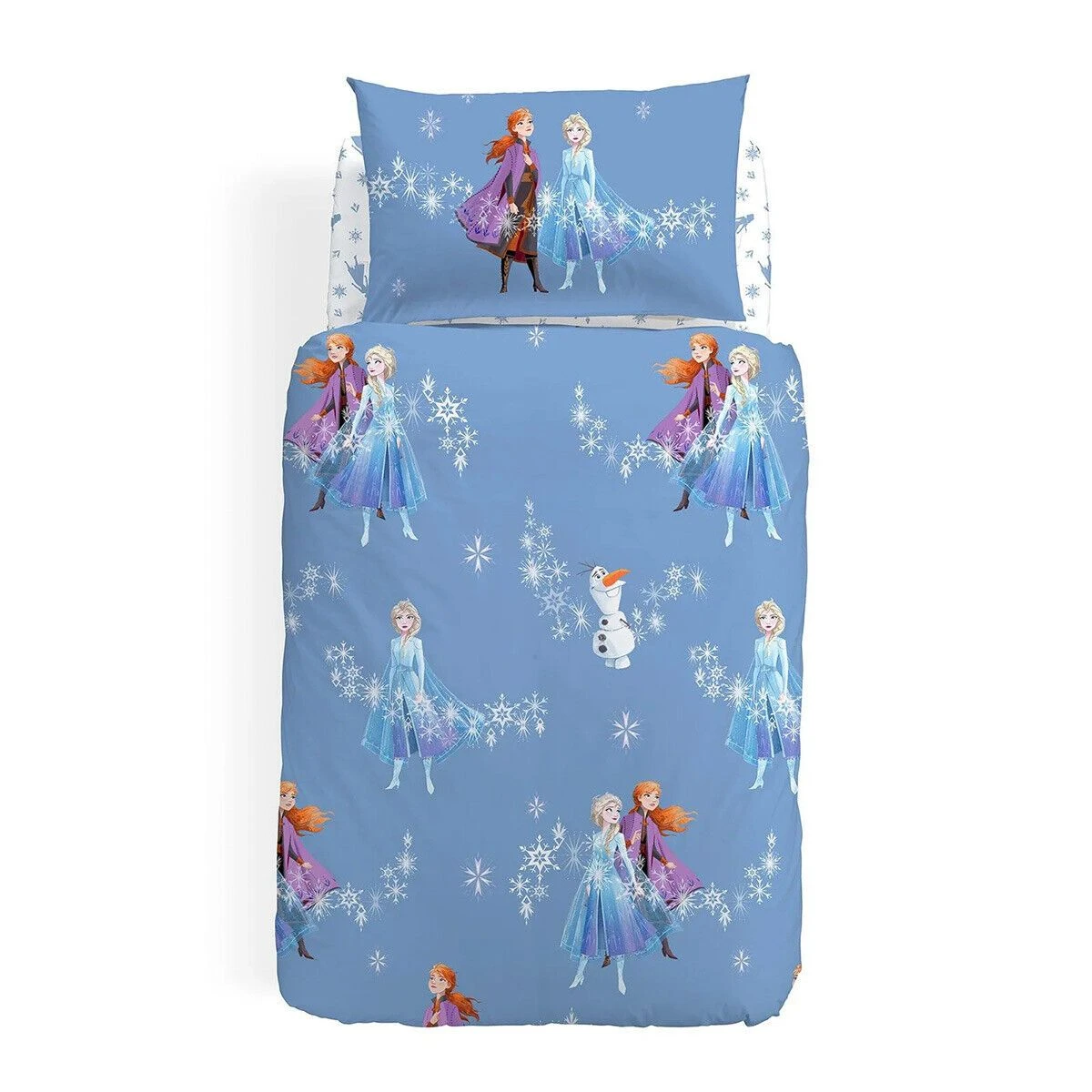 Frozen è il film d’animazione più amato dai bambini e dai ragazzi negli ultimi anni. Rappresenta un’idea magica, di un legame che va oltre tutto, quello tra due sorelle. Questo completo copripiumino è semplice e colorato e sarà perfetto in cameretta.