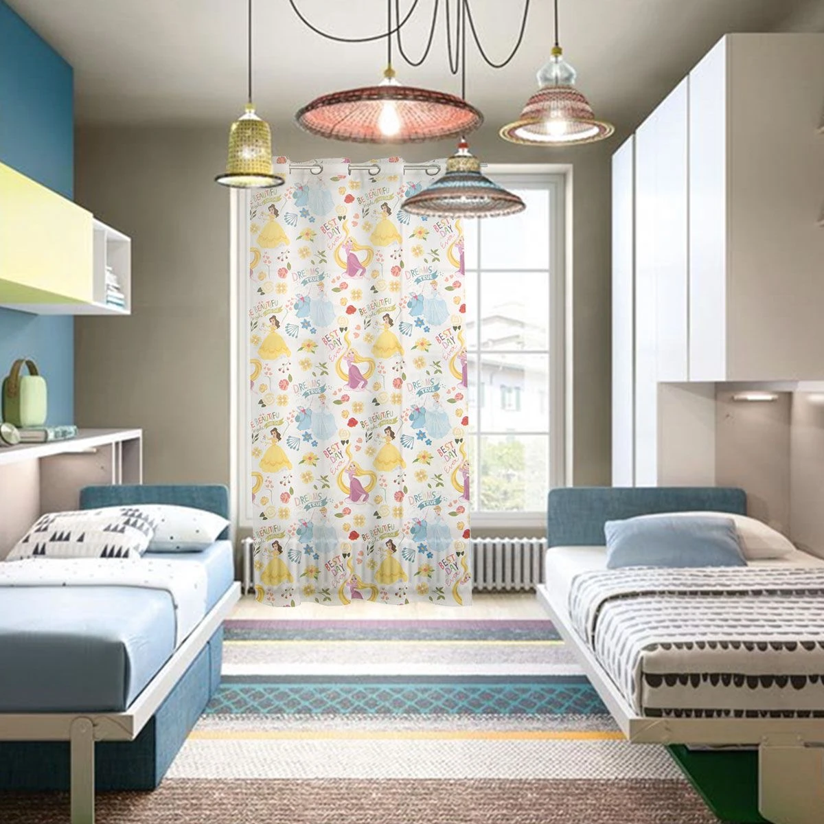 | Dettagli | La confezione contiene una tenda arredo, ideale per camerette Stampa multicolor ispirata alle principesse Disney Velata e semitrasparente Completamente rifinita e pronta per essere montata grazie alle borchie in cui va inserito il bastone 8 borchie metalliche colore argento con diametro interno di 4 cm Prodotto realizzato dalla licenziataria ufficiale del marchio |